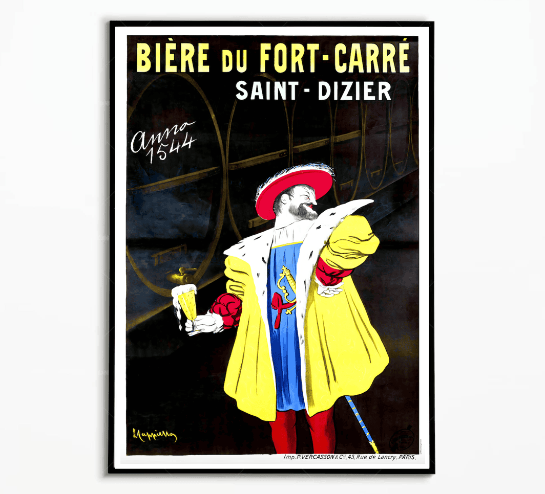 Reproduction d’une affiche vintage Bière du Fort Carré – Saint-Dizier. Un poster rétro de qualité supérieure pour une décoration murale authentique et originale, reflet du patrimoine brassicole et artistique français.
